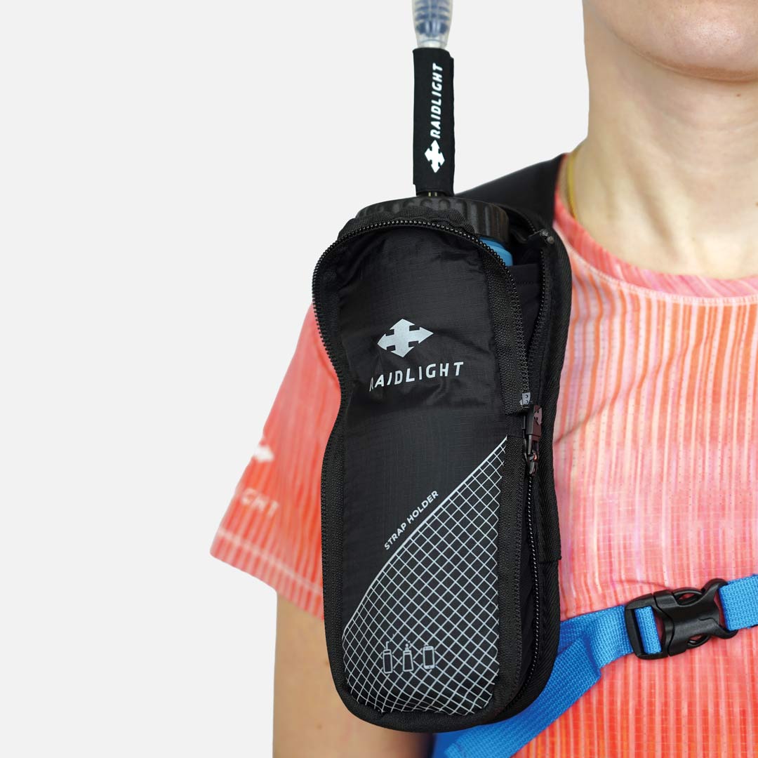 Le Strap Holder est très stable latéralement (pas de ballottement) et s'adapte à tous types de sacs à dos (pas de cumul possible avec des sacs possédant déjà des poches d'hydratation).