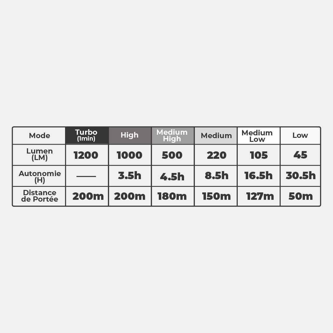 LAMPE FRONTALE 1200 LUMEN - Noir / 1200 Lumens est en rupture de stock et sera expédié dès qu’il sera de retour en stock.