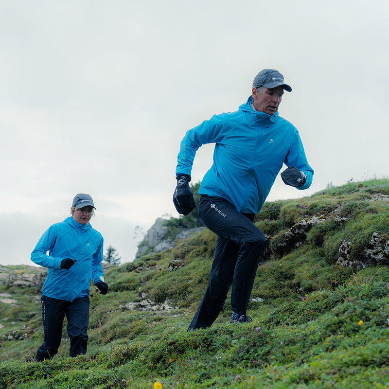 La ULTRALIGHT 3.0 (25K/50K) está diseñada para esfuerzos donde el peso y la impermeabilidad/transpirabilidad son prioritarios. Con un peso a partir de 175 g, pasa desapercibida en carrera y está dirigida a corredores que buscan una protección impermeable minimalista, orientada al rendimiento y a la optimización del peso. Su corte favorece la libertad de movimiento y el modelo integra un fuelle dorsal que permite cubrir una mochila de hasta 12 litros, lo que la hace perfectamente adecuada para el ultra trail.