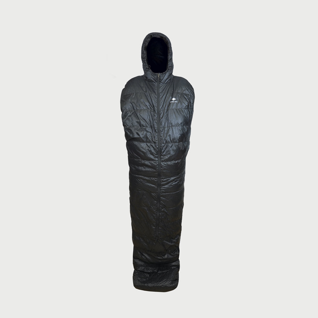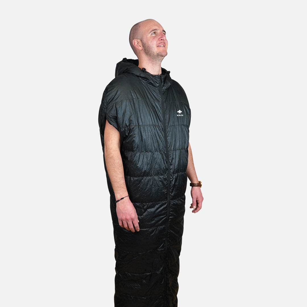 Saco de dormir convertible en chaqueta para competiciones o 'fastpacking' ultraligero.