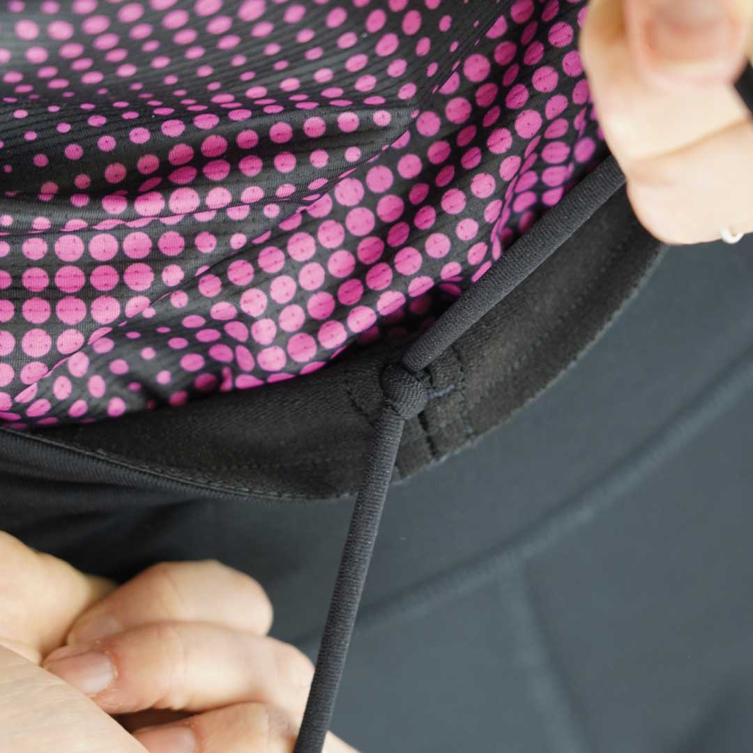 - Ceinture multipoches : 1 poche arrière zippée + 2 poches latérales sécurisées en mesh pouvant contenir des flasques de 300ml